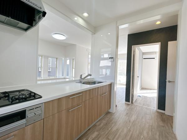 対面キッチンでご家族の様子をみながら家事ができます。