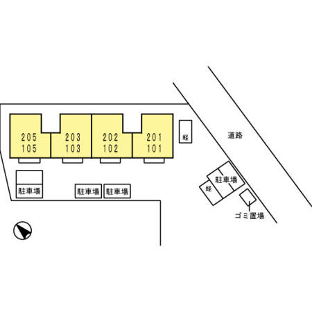| 種別/構造 | アパート/軽量鉄骨 | 部屋/所在階/階建 | 203/ 2階/ 2階建 |