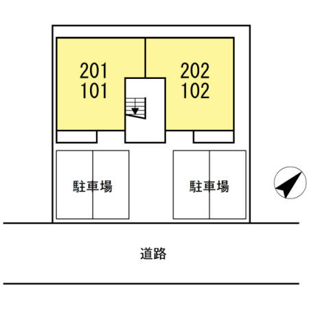 | 種別/構造 | アパート/軽量鉄骨 | 部屋/所在階/階建 | 102/ 1階/ 2階建 |