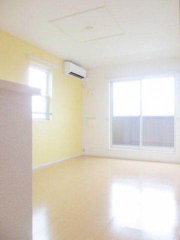 淡いペールイエローの壁紙がやさしく映えるお部屋